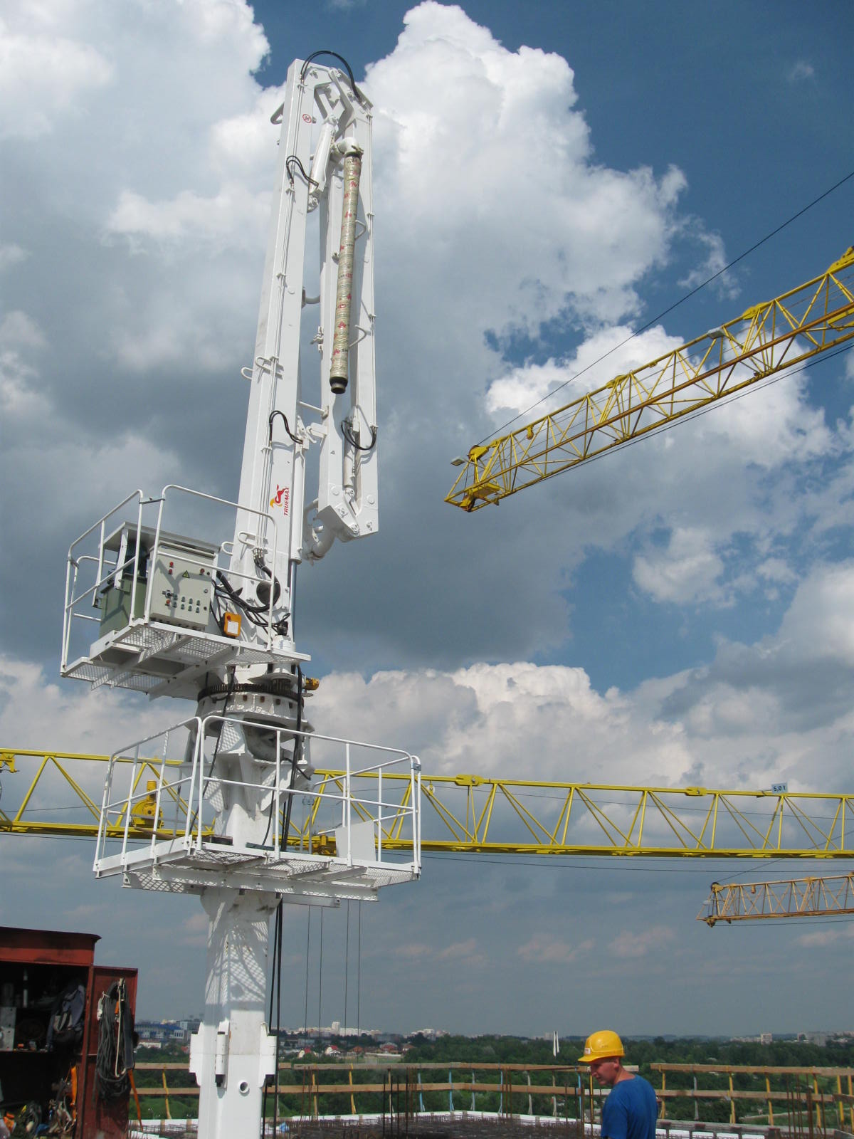17米混凝土布料機(jī)特點: (1)臂架分為三節(jié),Z型,全液壓驅(qū)動,折疊、展開靈活,布料范圍廣。臂架結(jié)構(gòu)采用高強(qiáng)度鋼板制作,強(qiáng)度大,自重輕。